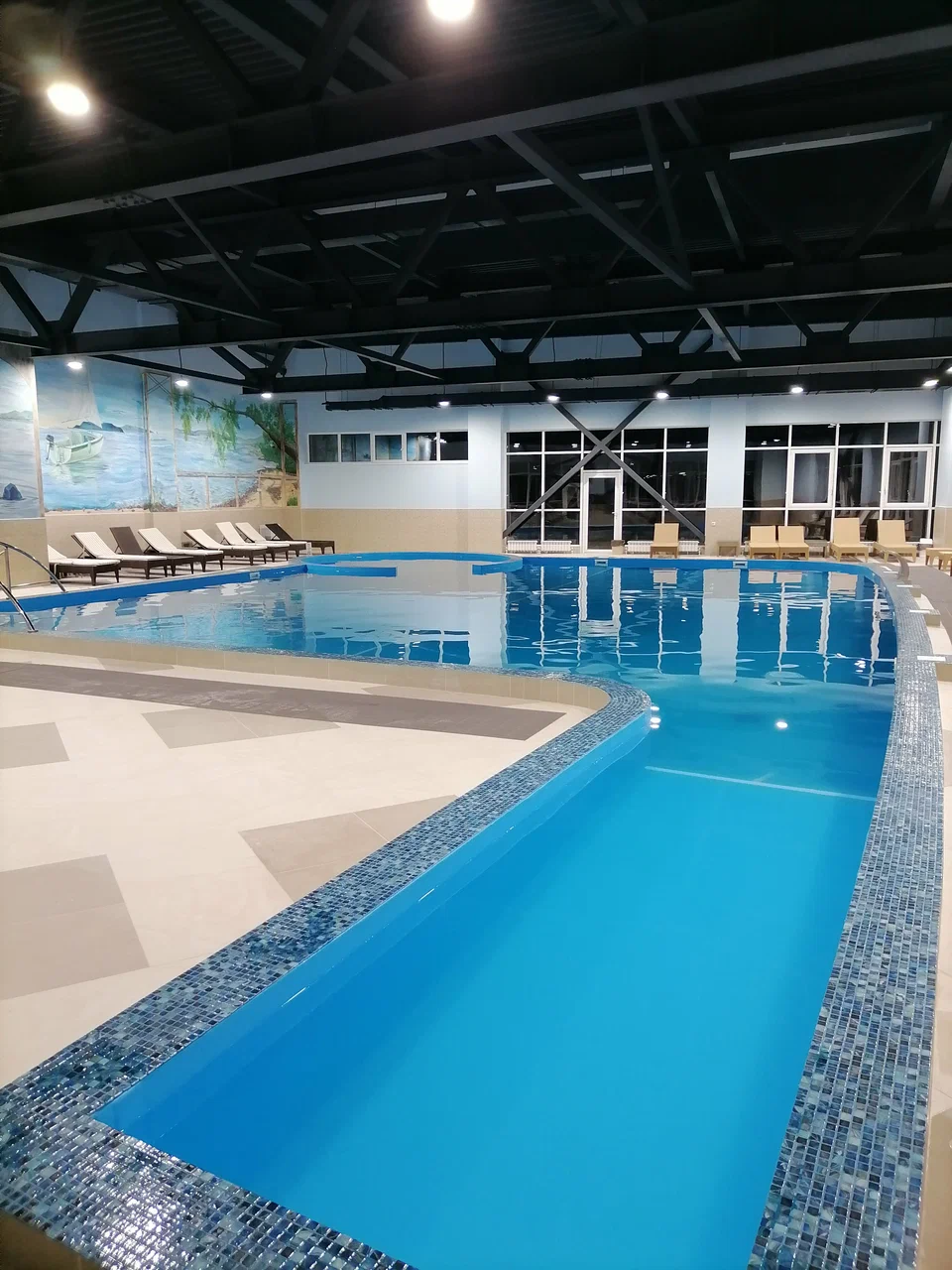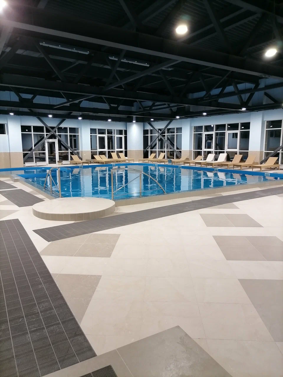 Демонтаж разрушенного защитного слоя бетона на плите перекрытия и зачистка арматуры от ржавчины. Покрытие очищенной арматуры антикорозионным составом. Усиление несущей способности ригельных балок перекрытия методом иньектирования эпоксидных смол в трещины, гидроизоляция бассейнов с тёплой морской водой, усиление колон и балок композитными материалами и углеволокном.